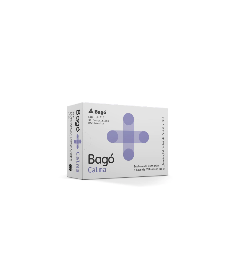 Bagó+ Calma es un suplemento dietario que combina Vitaminas B6 y D3 con Teanina y extractos naturales de Melisa y Tilo. En su conjunto, sus componentes son necesarios para el buen funcionamiento del sistema nervioso y para mantener una función cognitiva adecuada durante el día. Además, ayudan a prevenir y mitigar el estrés, la ansiedad y el nerviosismo.