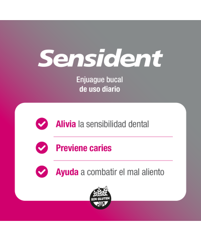" ["description_short"]=> string(417) "Sensident enjuague bucal alivia la sensibilidad dental y colabora en la remineralización de los dientes, además de combatir el mal aliento. Sabor menta.