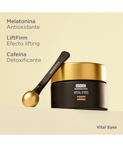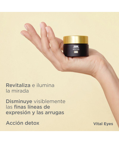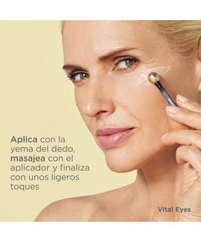 Vital Eyes Es Una Crema Reparadora Para El Contorno De Los Ojos Con Melatonina Y Cafeína Que Ayuda A Suavizar Las Líneas De Expresión Y Las Arrugas. Sus Ingredientes Estimulan Las Defensas Antioxidantes De La Piel Y Aportan Una Acción Detox. El Aplicador De Vital Eyes Proporciona Un Efecto Frío Que Ayuda A Descongestionar La Zona Y Refrescar La Mirada.