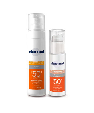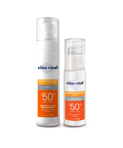 Precio rebajado 35% OFF Eliminar de lista Favoritos ELÁN VITAL Combo Elan Vital Protector Solar Corporal + Facial S/C Precio $ 37.375,00 Precio regular $ 57.500,00 Precio sin impuestos nacionales: $30888.43 Agregar al carrito