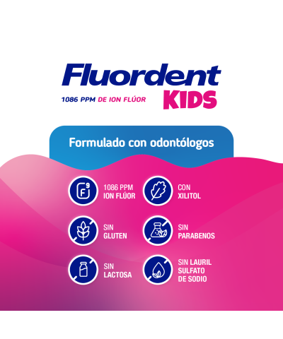 Contiene 1000 ppm de ion flúor, bicarbonato de sodio y xilitol. Su sabor tutti frutti la hace ideal tanto para adultos como para niños mayores de 6 años.