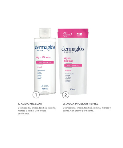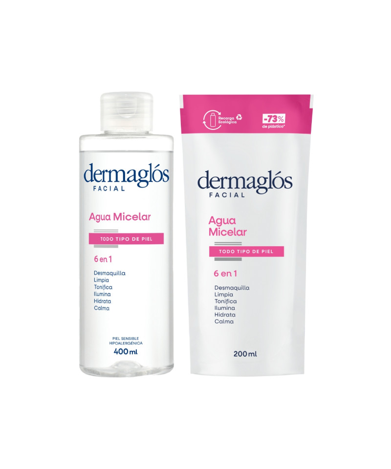 Kit Dermaglós Agua Micelar 400ml + Refill 200ml