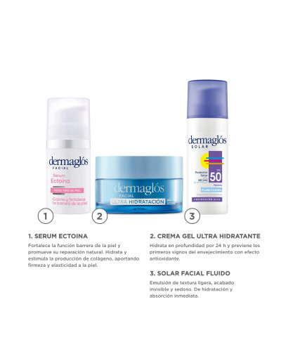 El Combo Incluye:Tonico Facial Dermaglos Hidratante Spray X200ml+Crema Facial Dermaglós Para Rojeces X 50 Ml+Leche Limpiadora Dermaglós X 200 Ml