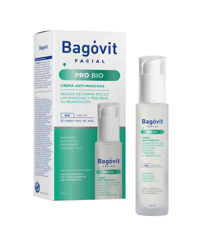 Precio rebajado 25% OFF Eliminar de lista Favoritos BAGÓVIT Crema Facial Antimanchas Pro Bio FPS40 X 50 ML Precio $ 14.779,61 Precio regular $ 19.706,15 Precio sin impuestos nacionales: $12214.56 Agregar al carrito