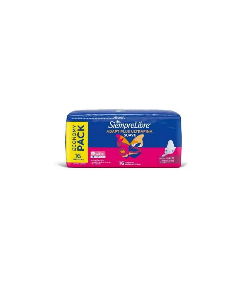 Toalla Femenina Siempre Libre Adapt Plus Ultrafina Suave C/alas X 16 Unid.