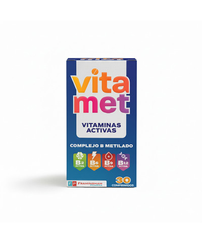 VITAMET® Complejo B Metilado Es Un Suplemento Dietario Que Aporta Vitaminas Del Complejo B En Formas Activas, Listas Para Ser Utilizadas Por El Organismo Sin Necesidad De Conversión Previa. Su Formulación Con L-Metilfolato Y Metilcobalamina Resulta Especialmente Beneficiosa Para Personas Con Alteraciones En Los Procesos De Metilación. Favorece La Producción De Energía A Nivel Celular Y Mitocondrial, Apoya El Metabolismo De Proteínas, Carbohidratos Y Lípidos, Contribuye A La Función Cognitiva, La Memoria Y La Concentración, Y Colabora En La Formación De Glóbulos Rojos. Además, Interviene En El Metabolismo De La Homocisteína, Promoviendo La Salud Cardiovascular, Y Aporta ácido Fólico Activo Clave Para El Desarrollo Fetal Saludable Durante El Embarazo.